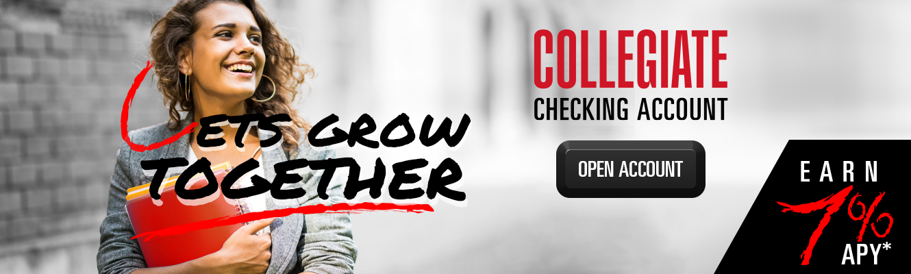 Our high-yield collegiate account combines the features of a traditional checking account with the ability to earn interest on the money deposited into the account. Our collegiate checking account is among the highest earning checking accounts in the nation, now offering 7% APY* on balances up to $10,000.